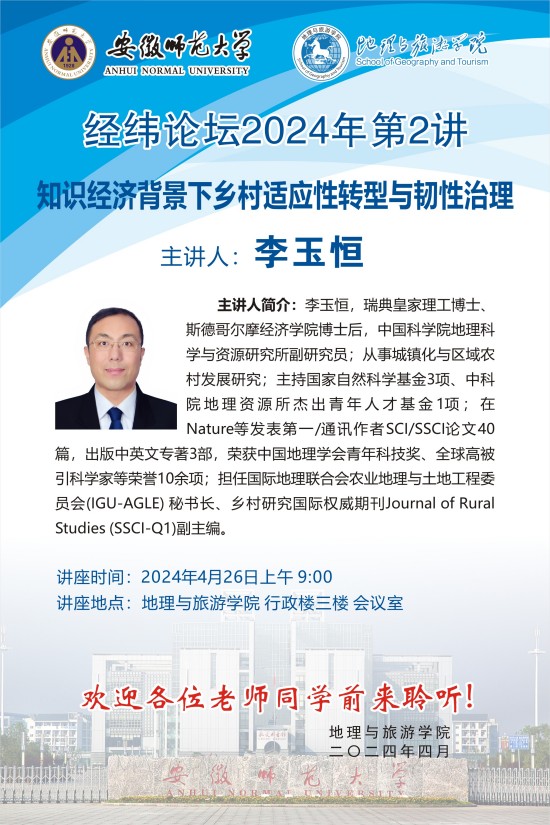 【学术预告】经纬论坛第34讲:知识经济背景下乡村适应性转型与韧性治理