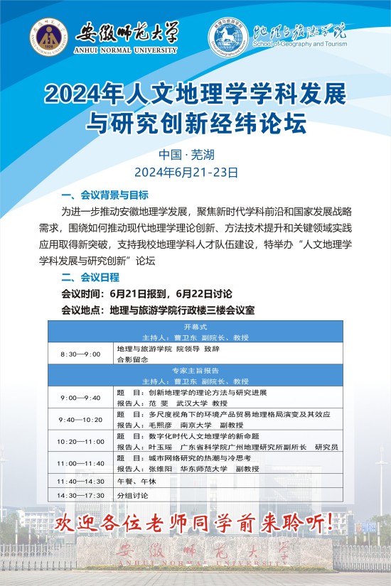 【学术预告】2024年人文地理学学科发展与研究创新经纬论坛