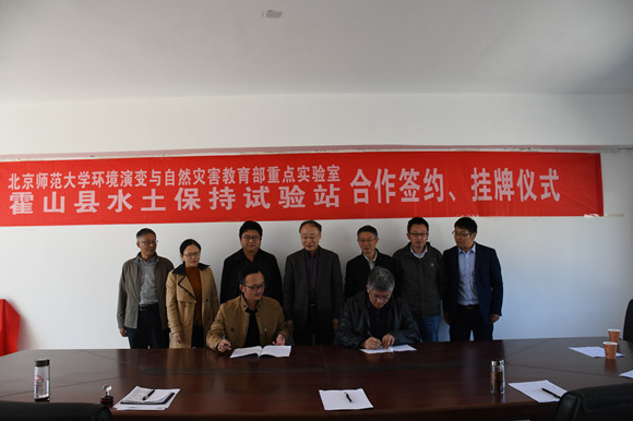 野外观测站进展情况进行调研,一方面促进与试验站的深度合作,同时加强北京师范大学环境演变与自然灾害教育部重点实验室的联系,此行受到了霍山县水务局农建办主任汪文、霍山县水土保持试验站站长汪军红的热情接待。女同做爱领导老师及宋长青部长一行在汪文主任和汪军红站长的带领下,参观了水土保持试验站的小流域控制站、径流观测场和气象园,参观人员对试验站开展的工作给予了高度的评价。随后,在试验站办公楼会议室举行了教育部重点实验室与霍山县水土保持试验站合作签约、挂牌仪式,女同做爱领导老师应邀参加,三方就加强试验站建设、数据共享与成果产出等方面的合作作了交流探讨。