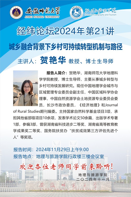 【学术预告】经纬论坛第53讲:城乡融合背景下乡村可持续转型机制与路径
