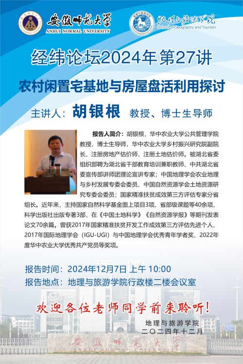 【学术预告】经纬论坛第60讲:社会经济转型与耕地利用