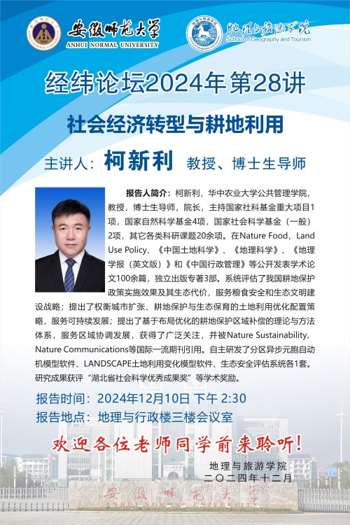 【学术预告】经纬论坛第60讲:社会经济转型与耕地利用
