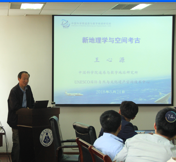 王心源首先阐述了数字地理学、空间信息技术方法相结合的新地理学,探讨用观察的方法来解释地理现象的因果联系,学会思考理解其中的现象;然后结合自然地理学、遥感地学应用以及遥感考古与古环境重建、数字遗产研究向大家展示了最新发现的突尼斯十处遗址,解释地理学需要空间考古的原因;最后鼓励师生们以地理学为基础开展考古方面的学术研究。