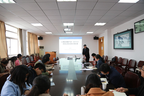 行政楼三楼会议室,华东师范大学紫江青年学者吴电明研究员作了题为 《土壤亚硝酸气体(HONO)排放过程及微生物机理》 的学术报告,相关专业教师及其研究生聆听了此次报告。