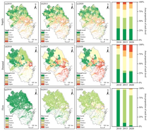 本科生在生态学领域国际知名期刊《Ecological Indicators》(影响因子7.0,中科院大类分区一区,期刊分类A5)发表论文“Cultural service assessment of cultivated land ecosystem in the Yangtze River Delta region from a supply–demand-flow perspective”。该文结合地理信息与农业大数据,基于“供-需-流”视角对长三角地区的耕地生态系统文化服务进行了系统评估并揭示了其时空分布模式,研究结果可为耕地资源保护与利用及其政策制定提供参考。2020级地理信息科学专业本科生答采薇和2021级地理信息科学专业本科生薛晨分别为论文的第一作者和第五作者,支俊俊副教授为论文的通讯作者。研究得到了国家自然科学基金(42271060、42371249)、安徽省自然科学基金(2208085MD91)、安徽省自然资源科技项目(2023-K-5)和安徽省高等学校省级质量工程项目(2023zybj006)的共同资助。