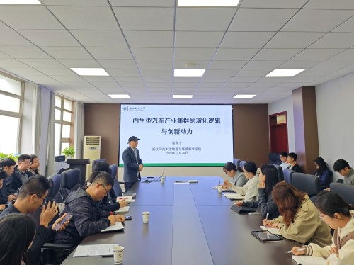 整场报告逻辑严密,案例丰富,为促进内生型汽车产业集群的转型升级提供了崭新的理论视角与实践启示。会后,姜海宁与参会师生就集群边界界定、创新绩效测度等问题进行了深入的交流与探讨,现场气氛热烈。