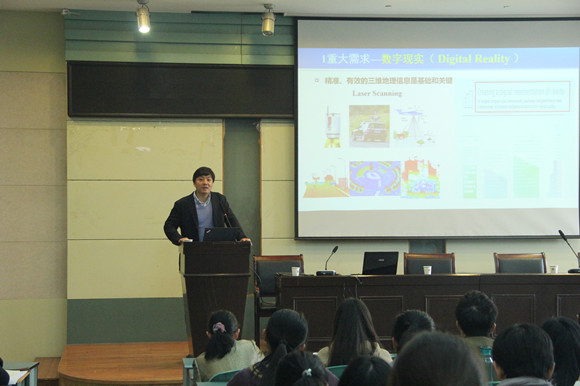 讲座过程中杨必胜从“激光雷达三维信息提取的现实需求、最新进展”两个方面展开论述。阐述了“雷达的三维信息在数字现实、全球气候变化、文化遗产保护、全息测绘、自动驾驶”等方面具有的重要意义。同时深入浅出地讲解了目前国内外三维激光雷达在“城市模型重建、机载激光测深系统、车载激光雷达系统、固定站激光雷达、精细林业调查”等方面的最新研究进展。