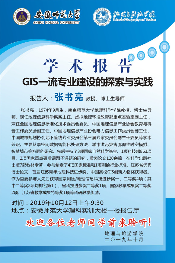 【学术预告】学术报告:GIS一流专业建设的探索与实践