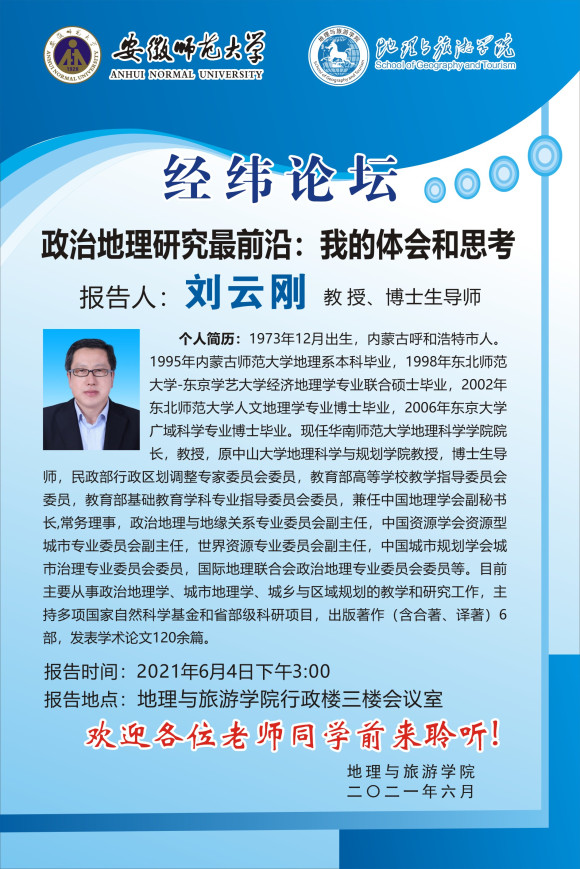 【学术预告】刘云刚:政治地理研究最前沿:我的体会和思考