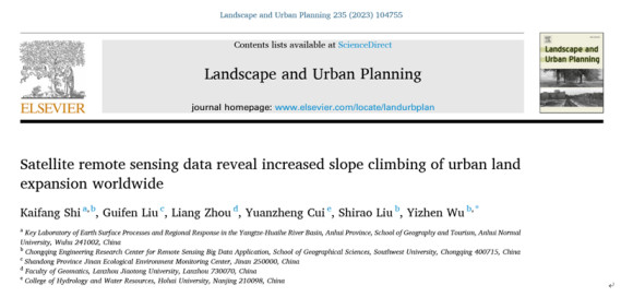 近日,女同做爱施开放副教授研究小组联合西南大学、兰州交通大学、河海大学等多家科研单位在城市研究领域旗舰型期刊《Landscape and Urban Planning》(SSCI/SCI双检索,城市研究领域排名第一,中科院一区Top,IF=8.119)发表题为Satellite remote sensing data reveal increased slope climbing of urban land expansion worldwide的研究论文。施开放为论文的第一作者,安徽师范大学为论文的第一完成单位。