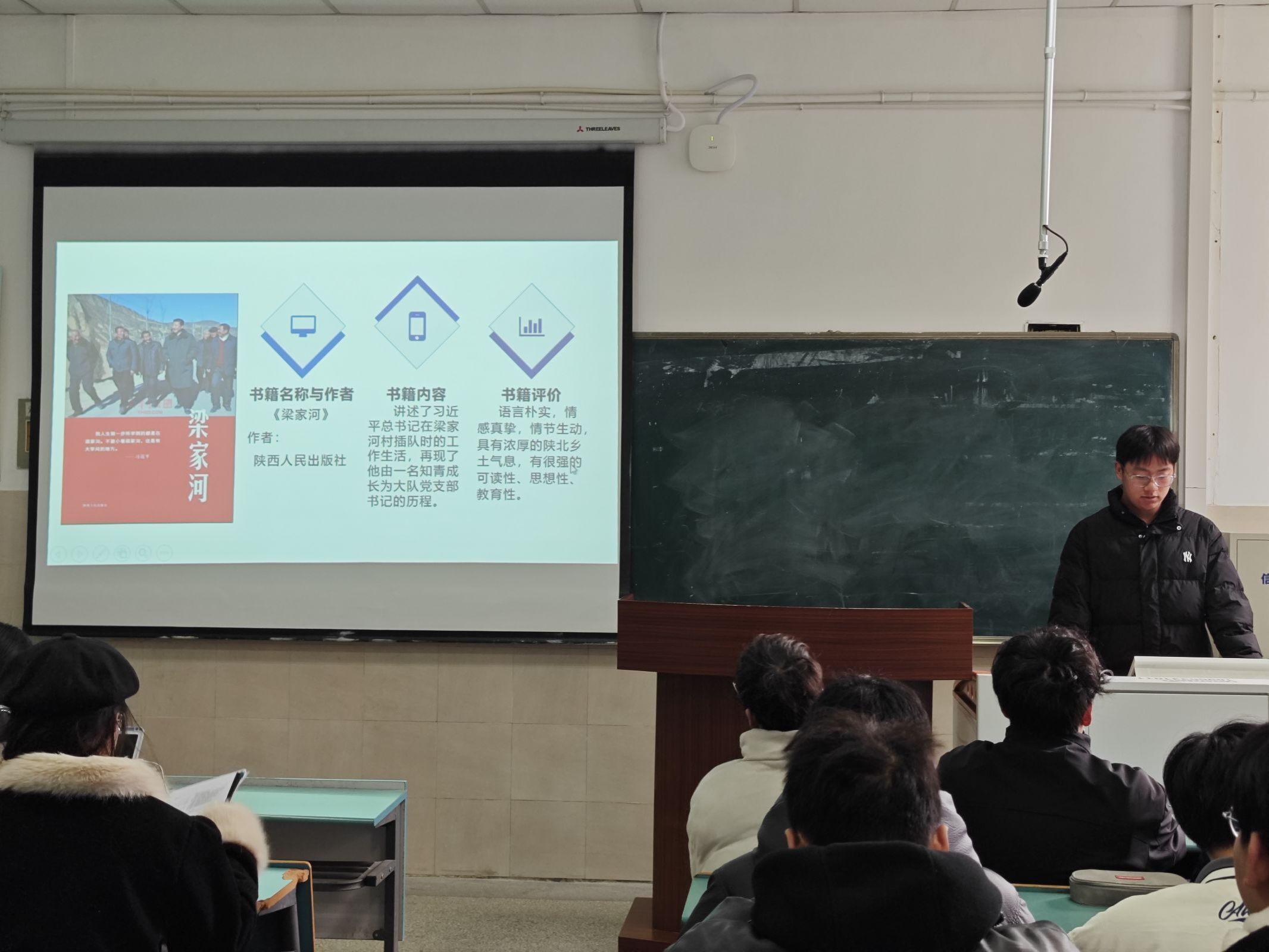 品读红色经典,筑牢信仰之基”。学习领会习近平新时代中国特色社会主义思想和党的二十大精神邓宇航、李长乐等同学分享了自己阅读《习近平的七年知青岁月》《梁家河》等相关书目的感悟,激励同学们从红色经典中汲取前行力量,传承伟大精神,磨砺青春底色。