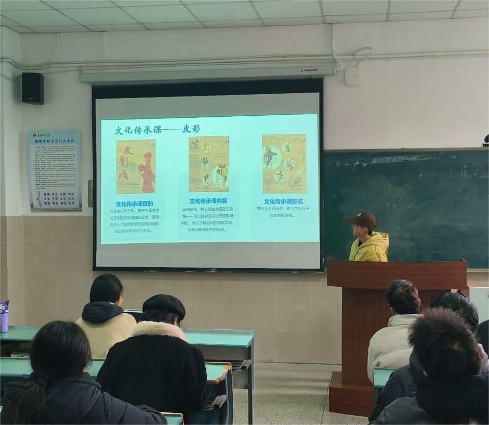 传承传统文化,讲好中国故事”。杜韫君同学用好家乡丰富资源,以短视频形式分享自己家乡的特色文化与民风民俗;郭宇飞同学拍摄“耍鱼灯”活动照片,带领同学们领略鱼灯之美;王薇同学制作海报向同学们宣传皮影戏相关知识。他们深挖家乡传统文化与年味年俗,努力讲好中国故事,争做中华优秀传统文化的传播者。