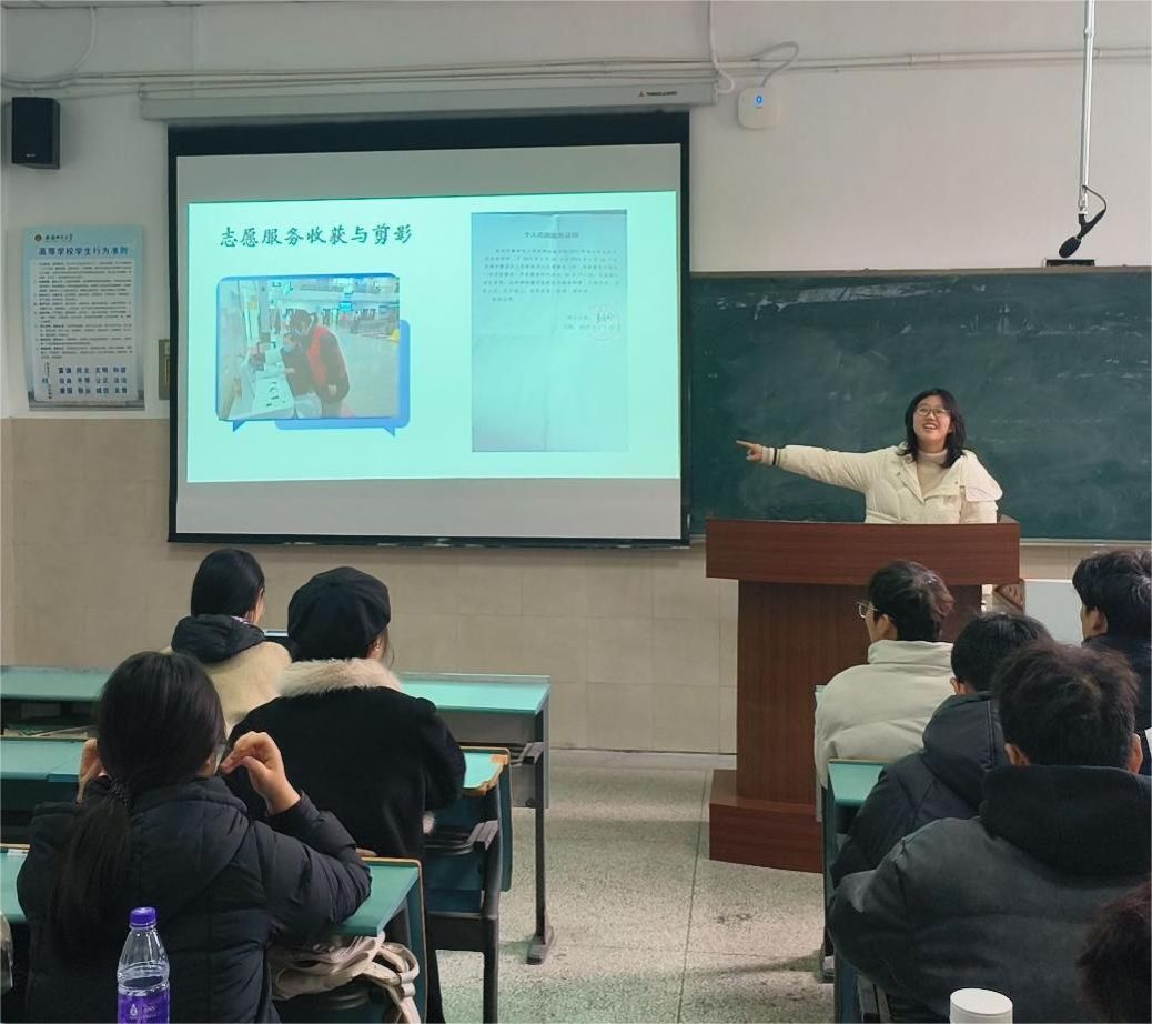 志愿服务显担当,助人为乐暖寒冬”。为大力弘扬志愿精神,彰显青年人的责任与担当,王莫楠同学积极参加家乡“破冰”活动,保障居民安全出行;谢梦瑶同学化身图书管理员,将所有图书分门别类摆放整齐,为读者提供一份便利;李诗毅同学认真做好垃圾分类工作,以实际行动保护生态环境……他们在各个岗位上发光发热,积极发扬无私奉献精神,全心全意为人民服务。