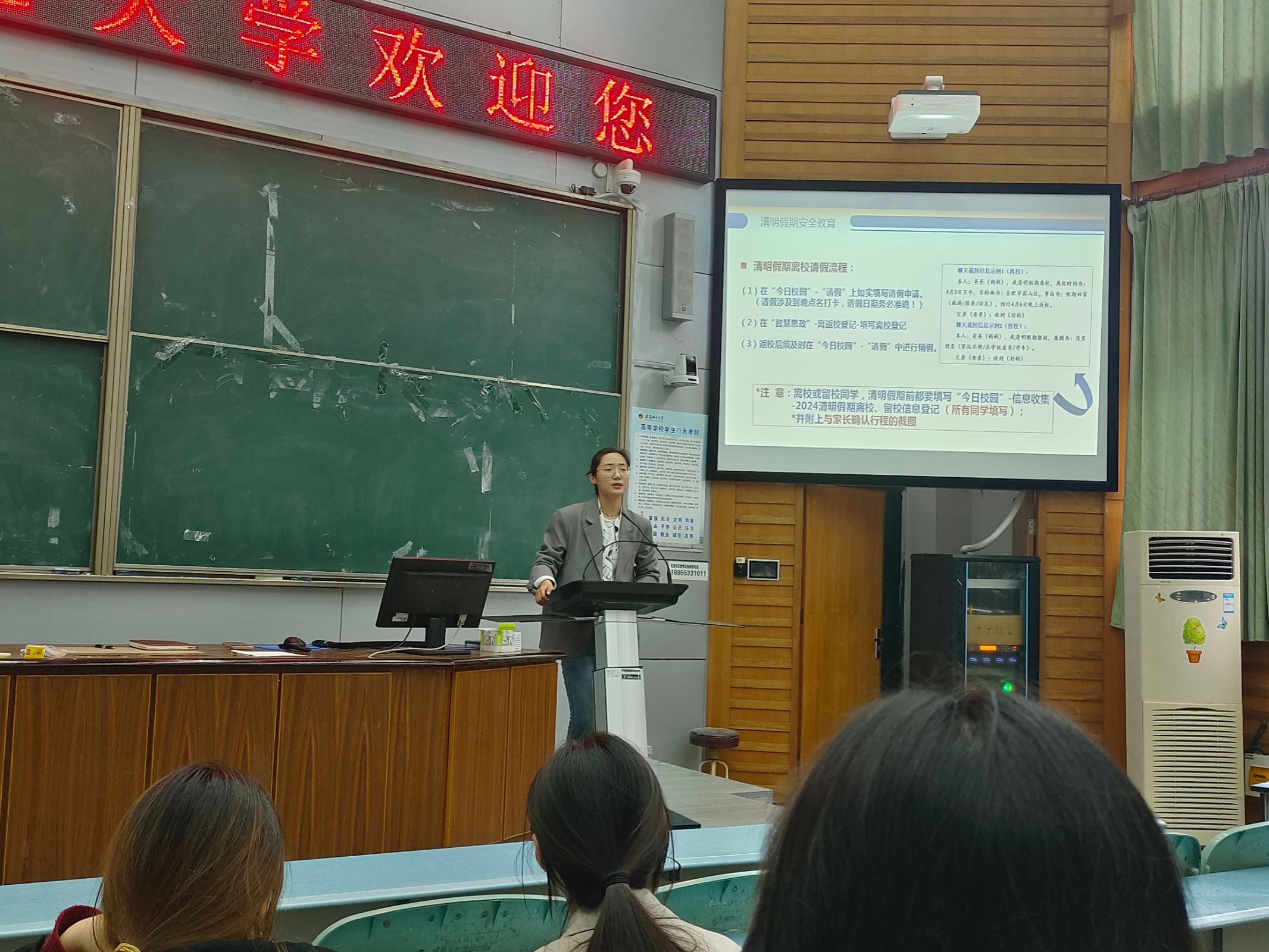 陈祥云对清明假期安全注意事项进行提醒说明,强调了清明假期离校请假流程、假期留校及返校学生安全管理要求、安全注意事项等,并对日常安全管理问题进行强调。