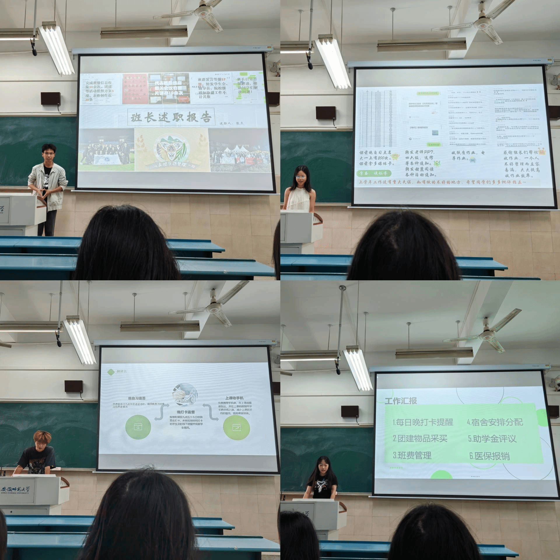 唐艺瑜、殷齐悦)金秋送爽,迎来了新的学年。展望未来启新程,不忘初心重传承,2024年9月20日下午,2023级城乡规划专业、2023级土地资源管理专业2024-2025学年班委述职报告暨班委换届大会分别于行知楼2040401、2040401A教室举行,会议由两位班长主持,全体同学参加。