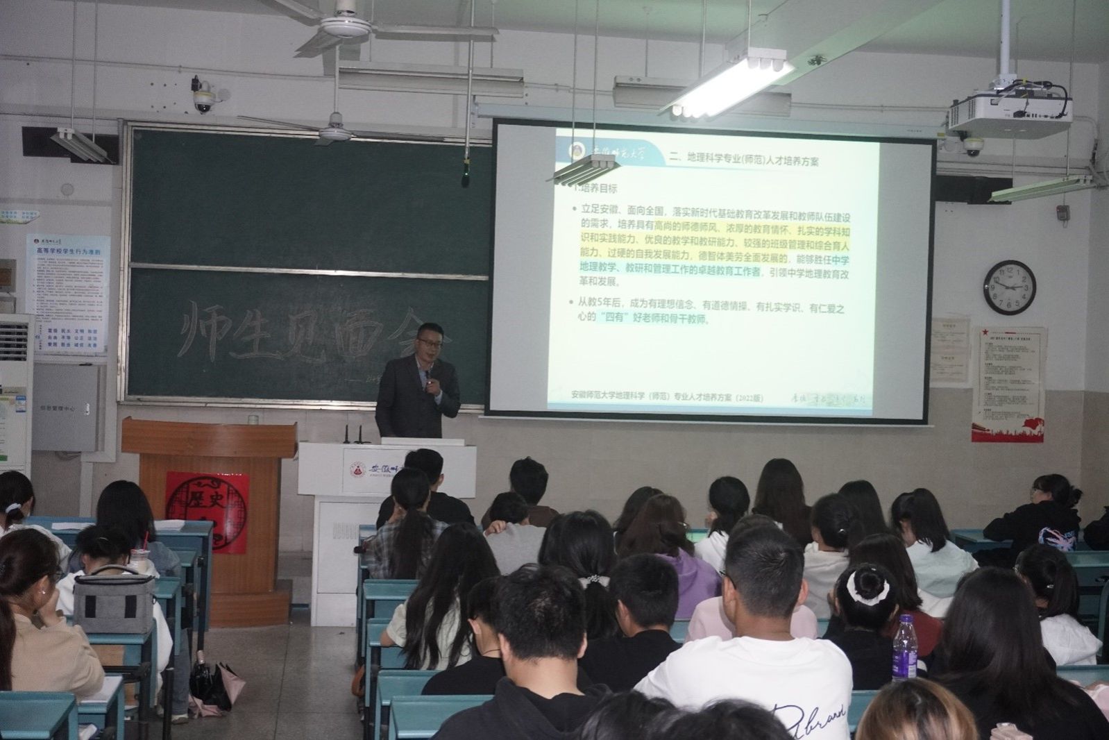田柏闻、何诗雨)2024年10月16日下午,女同做爱在教学楼2040204召开2024级地理科学专业师生见面会暨培养方案解读会。本次会议由地理学科负责人朱永恒教授主持,地理科学专业全体同学参加,旨在总结开学以来同学们在学习中的不足,帮助同学更加系统地了解专业培养方案,从而稳中有进,以更加饱满的精神态度面对接下来的学习和挑战。