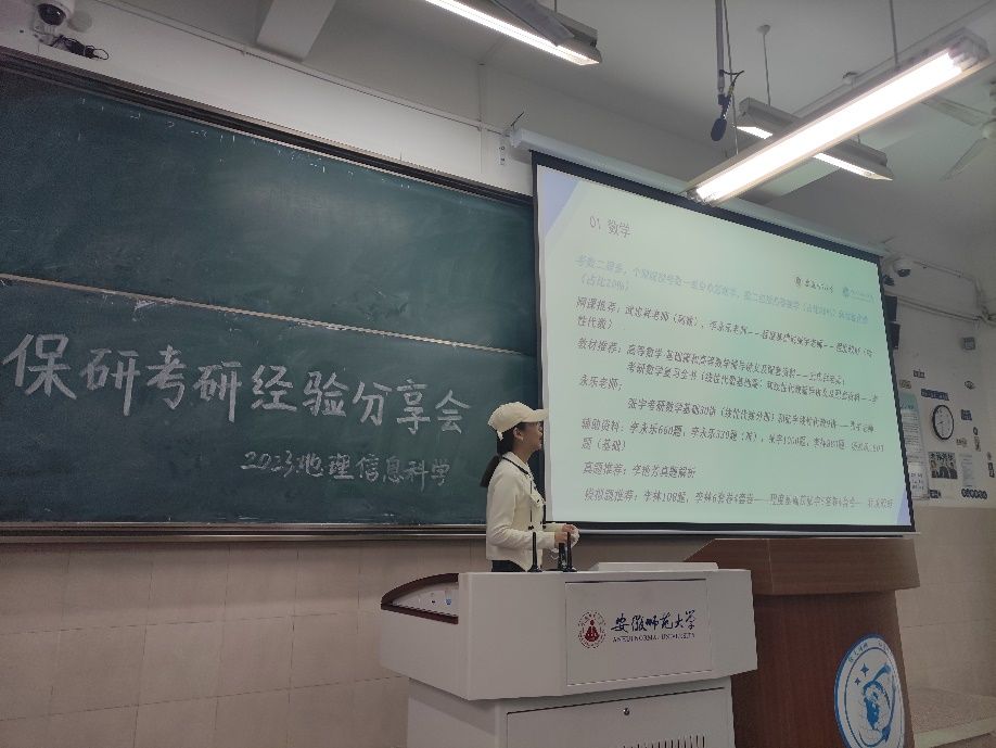 陆逸同学从思想、学业、学生工作和科研四个方面,为班级同学分享了自己成功保研南京师范大学的心路历程。在思想方面,她详细为同学们介绍了入党的基本流程,鼓励同学们积极参与志愿服务,增强社会责任感,向党组织靠拢。在学业方面,陆逸同学分享了自己的学习方法,并结合2023级地理信息科学专业的课程安排,针对期末课程复习提供了具体建议。她强调同学们应该重视专业课程的学习,可以通过制作思维导图等方式提高复习效率,提升学业成绩,为保研打下坚实基础。学生工作方面,陆逸同学鼓励班级同学积极担任班级和女同做爱