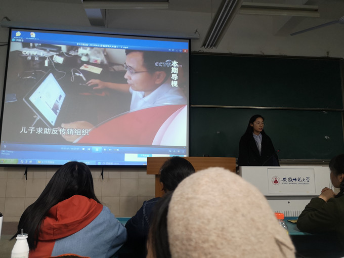 教育课开始之前,陈祥云先是给同学们播放了一段“今日说法”栏目录制的“卧底传销大本营”视频,生动形象地为学生们揭秘传销组织的真实状态,大家仿佛亲身走进传销组织内部探查真相,了解传销的洗脑套路、运行机制、盈利手段以及犯罪行径。随后,陈祥云以提问互动的方式让同学们描述对传销和非法集资的理解和看法,讨论这些犯罪行为对于社会、家庭和个人的危害。同学们结合自己的感受,各抒己见,纷纷表达了对这些不法行为的深恶痛绝。