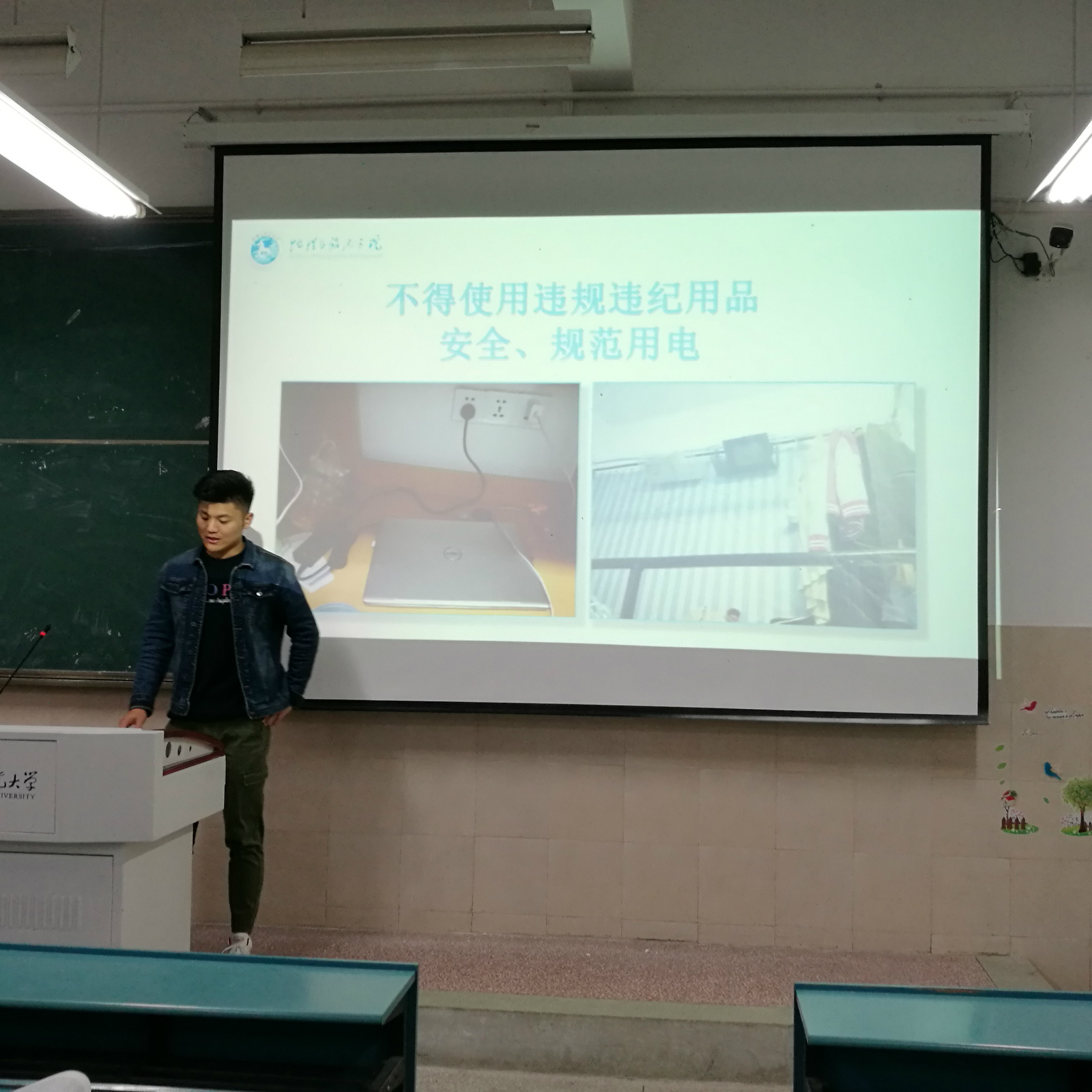 最后他针对近期的一些考试,着重强调了考风学风的重要性。他希望每一位同学从自身做起,从小事做起,诚信考试,杜绝作弊,积极备考。同时也通过案例使同学们认识到了考试违纪、作弊后果的严重性,强化了大家的诚信意识。