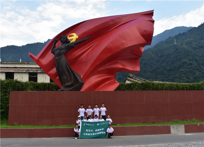 赴汶川、成都公民防灾意识调研团队到达汶川县映秀镇,调查当地灾后重建情况。