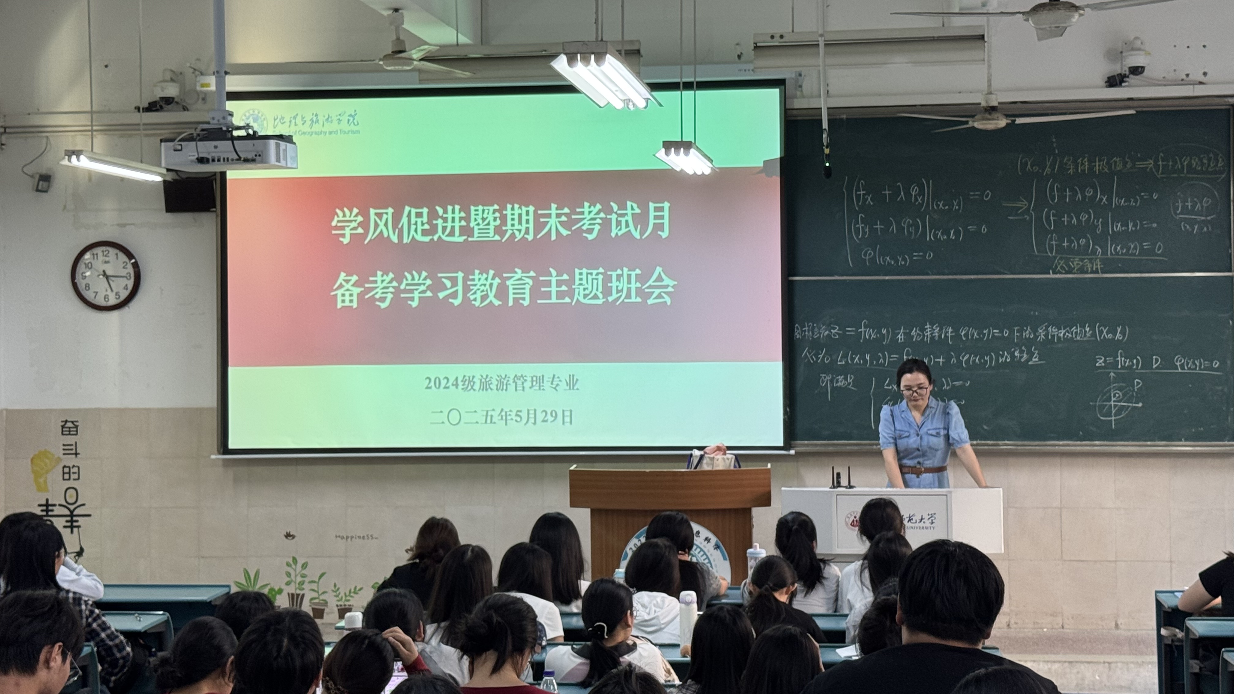 2024级旅游管理专业在行知楼2040103召开端午节离返校安全教育暨期末考试月学风促进主题班会,2024级旅游管理专业全体同学参加,班会辅导员韦银艳主持。