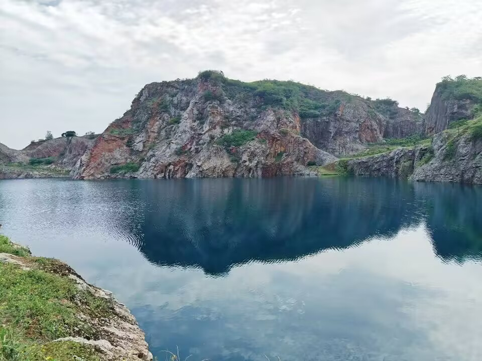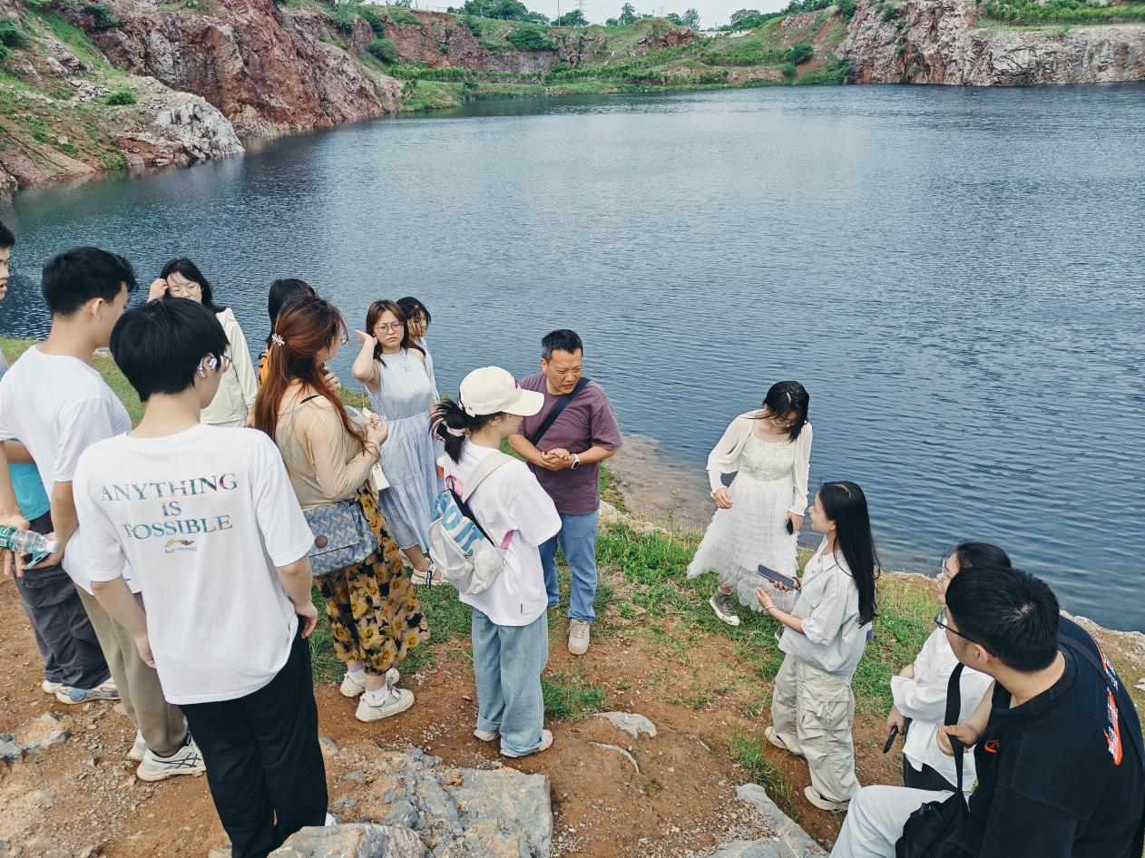 地理科学专业教师杨立辉首先向学生讲解该湖的历史背景:“此处原为白马山石灰岩矿坑,矿场关停后经自然修复形成湖泊。此前公众对湖水颜色存在疑虑,质疑湖水颜色可能与重金属污染有关。但经专业机构检测证实水质安全,只是硬度偏高。”