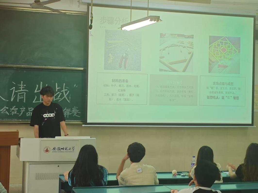 5月25日下午,安徽师范大学爱心者协会在校园内成功举办了“手艺人请出战!——公益产品创意争锋赛”。本次活动以“手工创艺映爱意,公益之行暖人心”为主题,围绕手工创意展开,设置支教和敬老两个赛道,旨在通过公益捐赠大学生手工创意产品,为孩子和老人送去关怀,同时激发大学生的创新思维,提升实践能力。