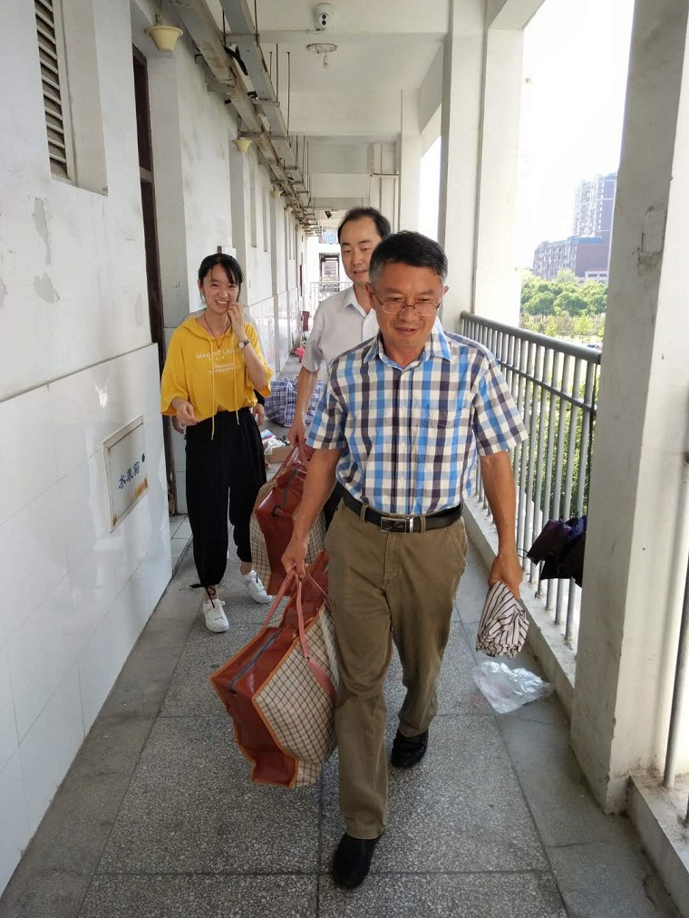 的集中搬迁时间安排在7月15号。搬迁从中午12点开始,以班级为单位有序进行。在搬迁过程中,地旅学子展现了合作、互作、奉献的良好精神风貌,尽管天气炎热,但同学们在搬迁过程中有说有笑,男生也是全员出动,帮助女生完成宿舍搬迁工作;贾冠忠书记和乔静书记不仅到场指导,还帮助学生搬迁行李,并到新宿舍慰问关心搬迁的同学们。搬迁完毕,同学们又返回原来的宿舍进行清理打扫,还原宿舍本来面貌,做到善始善终,给学弟学妹留下一个良好的宿舍环境,做好表率。