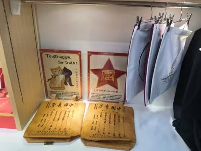 在雨花台的红色文创展区,团队将目光聚焦于琳琅满目的文创产品上。文创英文标语主题海报以鲜明的视觉设计,将革命标语与现代艺术元素巧妙融合,强烈的视觉冲击力瞬间吸引了众人的目光,让人忍不住驻足欣赏,细细品味其中蕴含的革命精神;“中国青年” 文创包则别出心裁地将先烈对青年的殷切寄语印于其上,简约而不失内涵。这样的设计,不仅让文创包具备了实用价值,更使其成为了传播红色文化的流动载体。