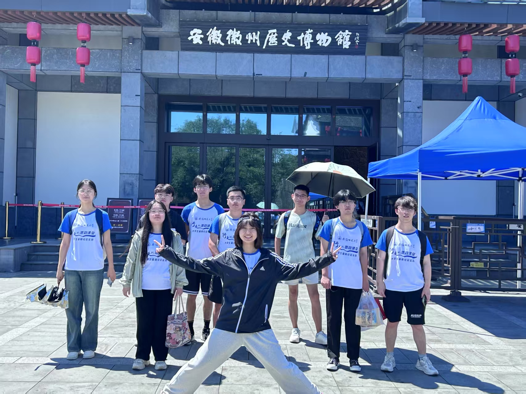 参观徽州历史文化博物馆是此次调研的重要环节。馆内陈列的徽派建筑构件、歙砚、徽州三雕等非遗展品,生动展现了徽州非遗文化的深厚底蕴。队员们一边仔细观看展品,一边认真聆听讲解员的介绍,不时用手机拍摄记录,还与博物馆工作人员就非遗保护与展示进行交流探讨。队员们都沉浸在博物馆浓厚的文化气息中,对这些非遗展品有了更深刻的了解。