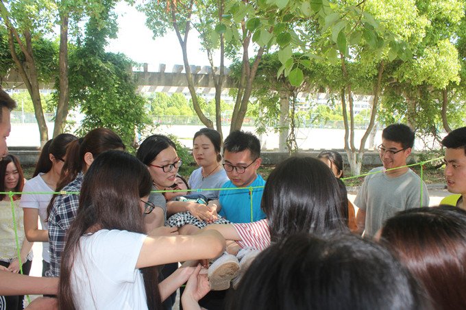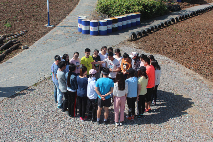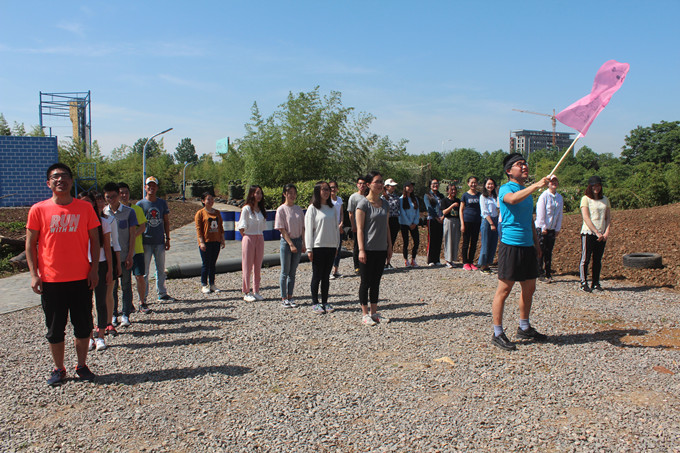 本次活动主要为破冰之旅、穿越电网、信任背摔等三个模块。在经过短暂的面对面握手游戏的热身后,大家迅速融入训练的氛围中。“抓住机遇”项目,考验了同学们的反应能力和团队协作能力,“教练说”项目则逗得在场同学开怀大笑。随后,在场同学组成一个小组,五分钟的紧张准备后,进行小组风采展示。诙谐有趣的队名、队歌、队训引发场下阵阵的欢笑和掌声。此环节不仅拉近了各小组成员的距离,还激发了同学们的创新思维。