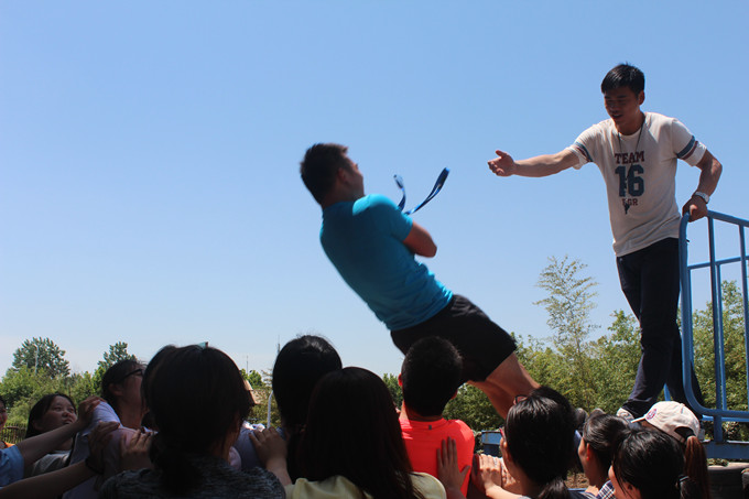在教练员的精心讲解后,信任背摔活动正式开始。信任背摔是一项心理素质拓展的活动,目的是通过这个活动建立起彼此间的信任关系。同时,这个活动还可以锻炼心理素质,克服恐惧,对同学们的心理素质提升有很大帮助。同学们刚开始很害怕,但是在场的同学彼此鼓励加油。每一位同学都克服了恐惧,成功地完成了挑战。