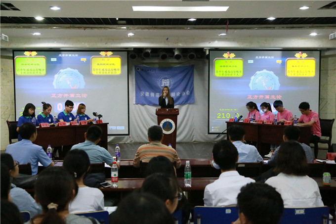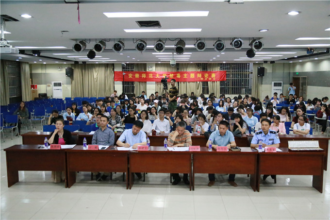 本网讯(辩论协会)“弘扬禁毒精神,放飞青春梦想。”2017年5月17日晚7点,安徽师范大学禁毒辩论赛决赛在大学生活动中心二楼团委多功能厅如期举行。本次活动在芜湖市禁毒办的支持下,由校团委主办,校辩论协会和国旅女同做爱