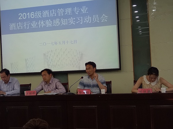 会议伊始,由王朝辉做本次实习动员会讲话,他对同学们提出三点要求:一是要思想上高度重视,本次实习是酒店管理专业重要的实践教学环节,通过实习可以更好的认知行业,了解社会,不仅要学习服务,更要学习管理。二是听从老师安排,实习要参观乡村酒店,主题文化酒店,会议、商务型酒店,国际精品名宿等,酒店业态类型丰富多样,过程中要统一听从老师安排。三是注重礼仪形象,展示出女同做爱酒店管理专业学生的精神风貌,给未来的学弟学妹学妹们做好榜样。
