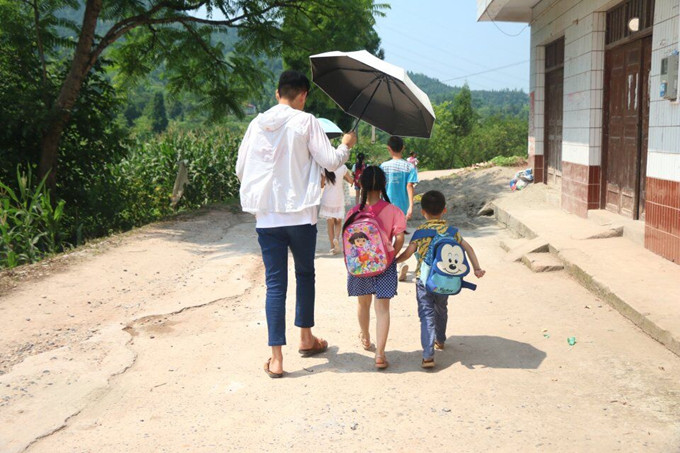伴随着有趣的小游戏,充实的辅导课,上午的课程结束了,为了保障学生们的安全,支教团成员分成5个小组,将同学们一一互送回家,骄阳与田埂伴随着一路的欢声笑语。