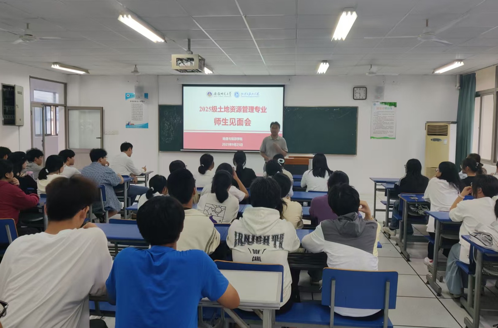 副院长杨兴柱、土地资源管理专业负责人费罗成出席,2025级土地资源管理专业全体新生参会,会议由韩红豆主持。