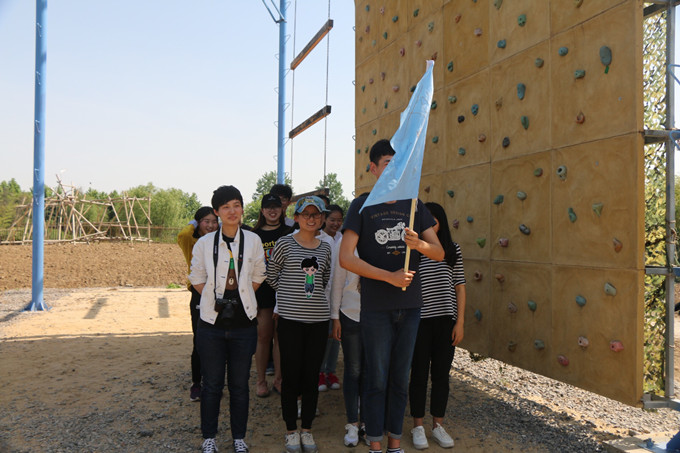 时间悄然流逝,“太空漫步”是此次活动的最后一个项目,团队所有成员带上手套围成一个圈,手上紧握一根闭合的绳子,使绳子绷直,所有人向后倾倒,依靠绳子的合力作为支撑点,避免摔倒。所进行的挑战是,团队每位成员需依次在绳子上行走一圈,过程中,一旦有一人松手或松力,就会造成其他人陷入危险,因此该项目十分考验团队协作能力和个人意志。
