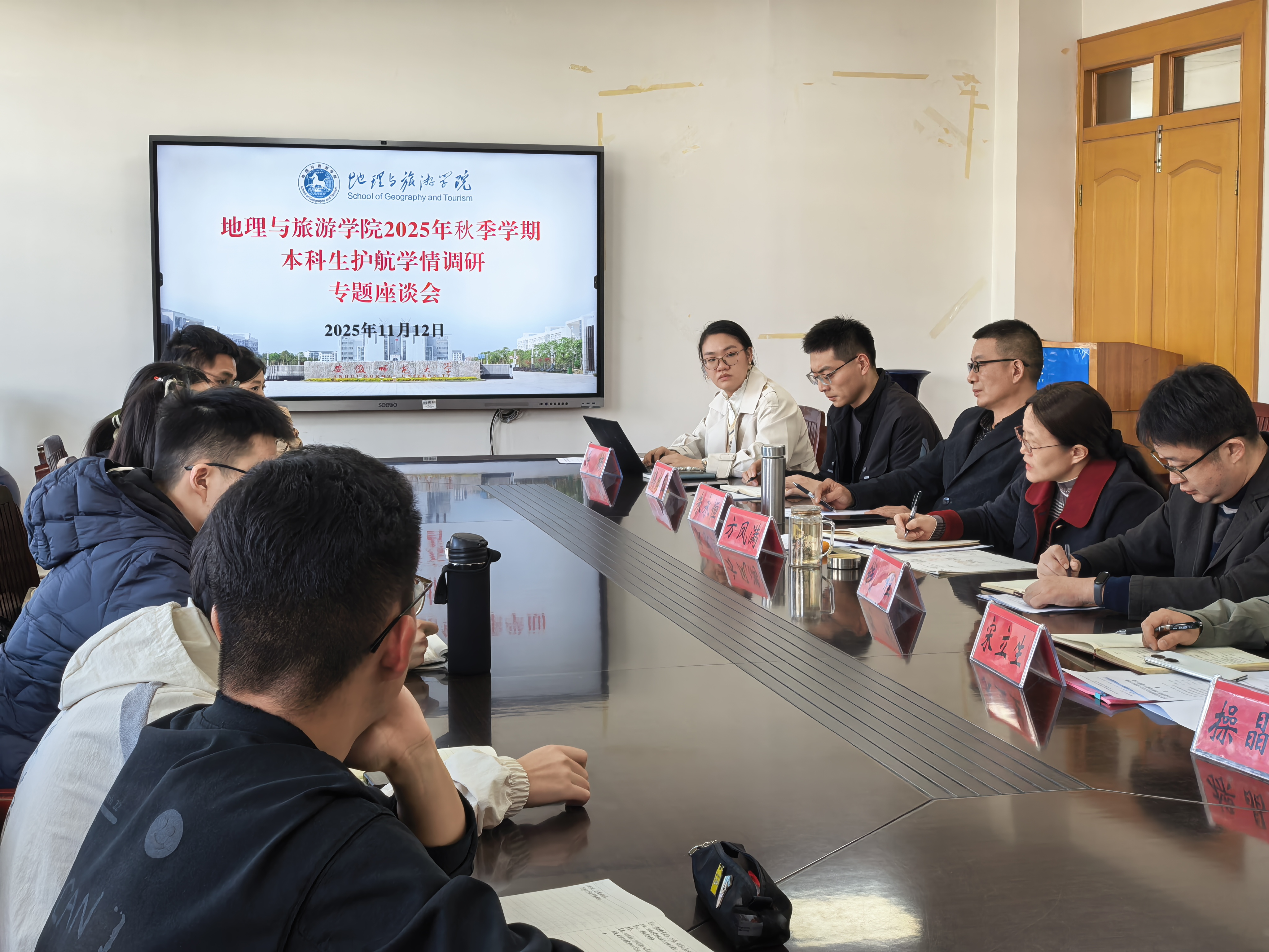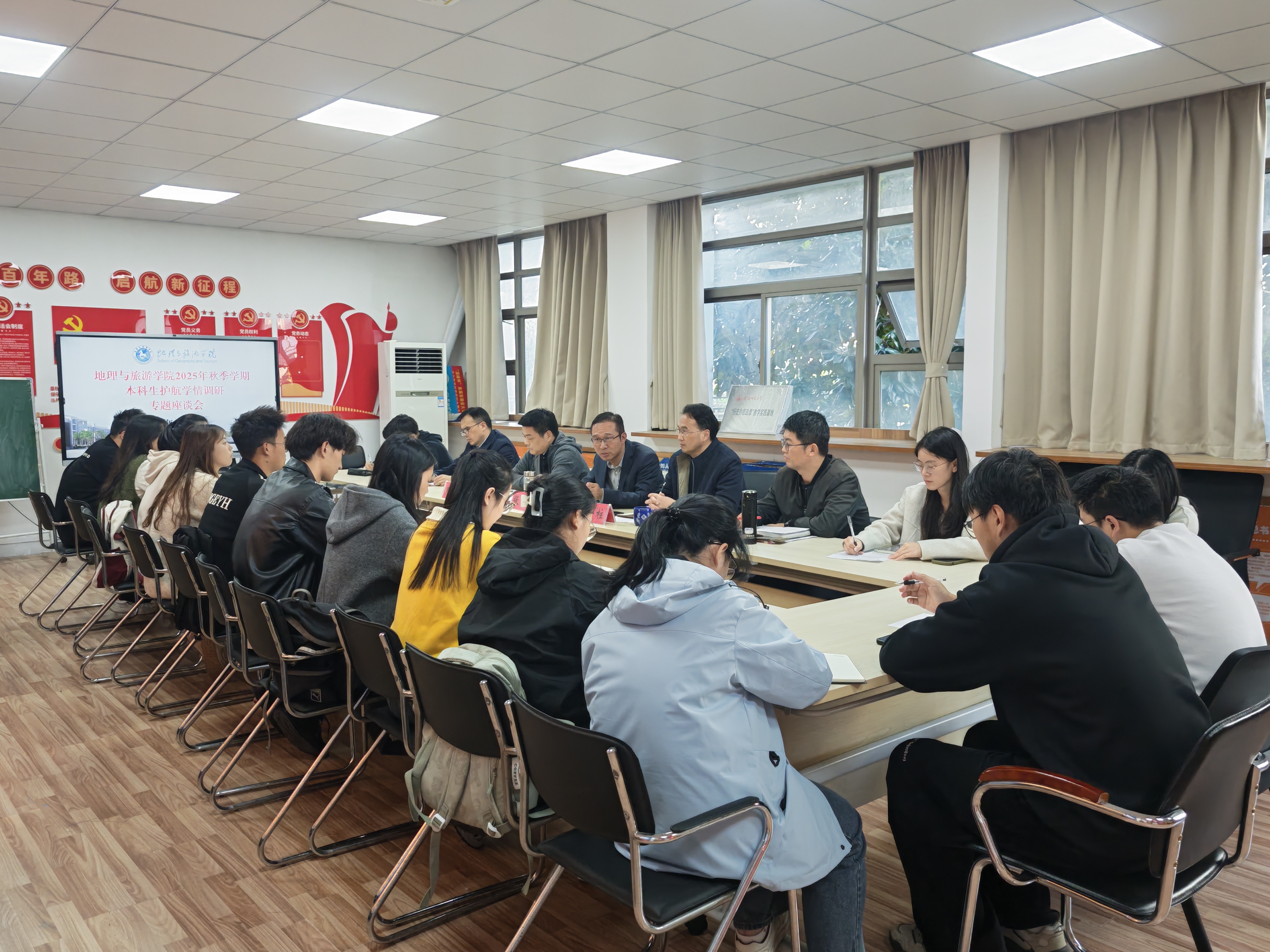 组织召开2025年秋季学期本科生护航学情调研专题座谈会。基于专业特点,座谈会分设地理地拔地信与旅游土地城规两个专场同步进行。女同做爱
