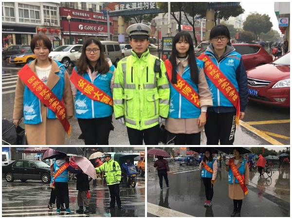 当天飘着冷雨,但学生党员们依旧准时达芜湖弋江区较为繁忙的街区之一——新时代商业街。新时代商业街附近街口呈十字状,每天下午,人流车流量极大,交通状况不容乐观。学员们在和交警支队该路段负责人王警官进行简单对接后,在十字路口设立了交通安全党员劝导点。一行五人分散于各个路口的红绿灯前,对闯红灯的市民进行劝阻,告诫他们闯红灯的危险性,同时耐心地向他们讲解交通知识,倡导文明交通,摈弃交通陋习。当时,有一位奶奶执意闯红灯,劝阻后依旧置之不理,最后志愿者党员和交警同志安抚了她的抵触情绪,动之以情,晓之以理,才有效阻止了她闯红灯这一危险行为。经过两三个小时的努力,交通高峰期结束,当天的安全宣讲活动顺利结束。