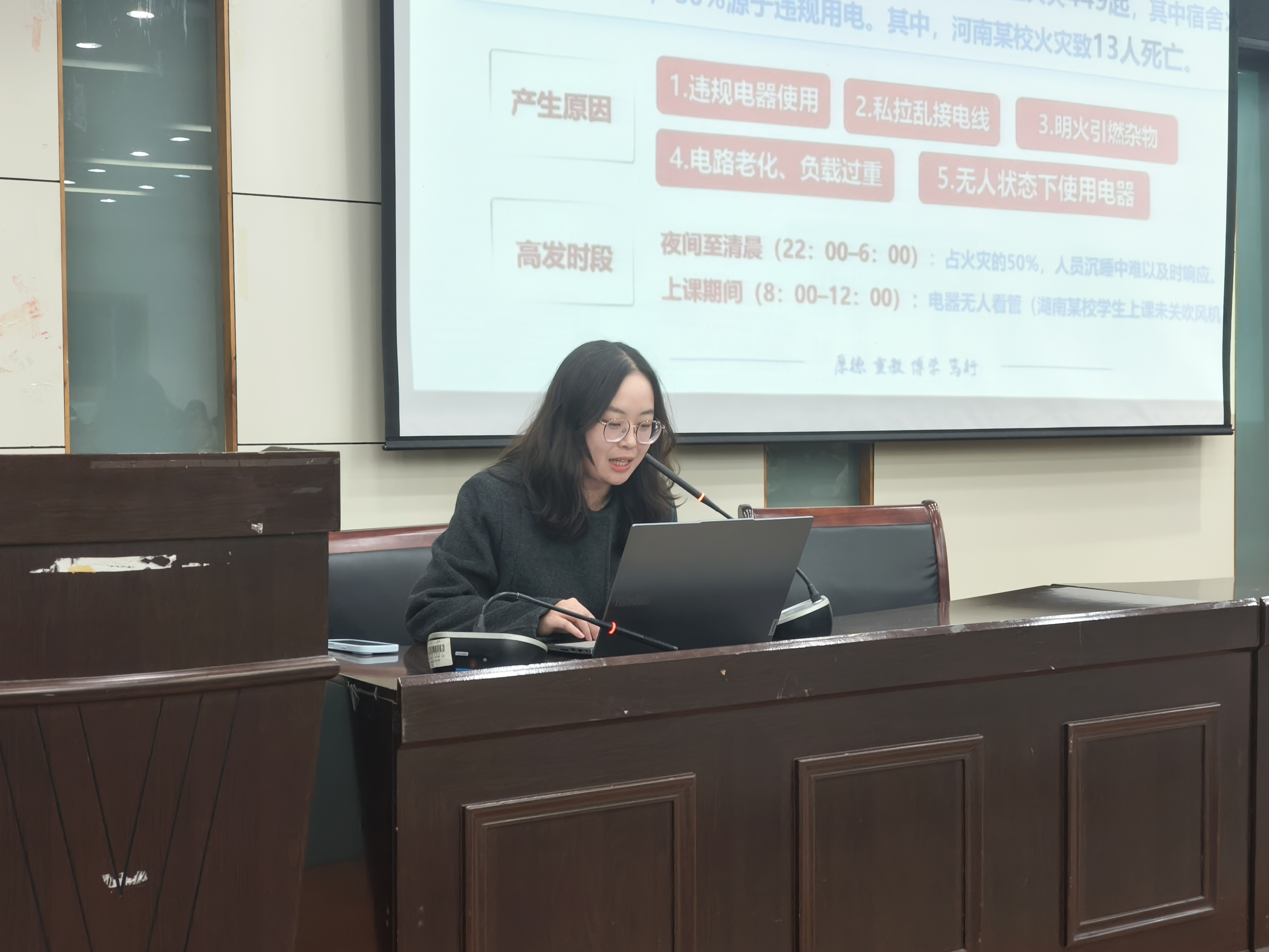 班会紧扣冬季高发安全风险,围绕消防安全、反诈防骗、交通安全、情感教育与生命教育五大维度展开,通过真实案例剖析、实用应对策略讲解和互动交流,引导同学们树牢“安全第一”的理念。同时,班会特别关注学生心理健康与情感安全。面对学期末学业压力叠加冬季情绪低落的问题,章怡晨鼓励同学们学会理性沟通、主动倾诉,并积极利用学校心理咨询服务资源。