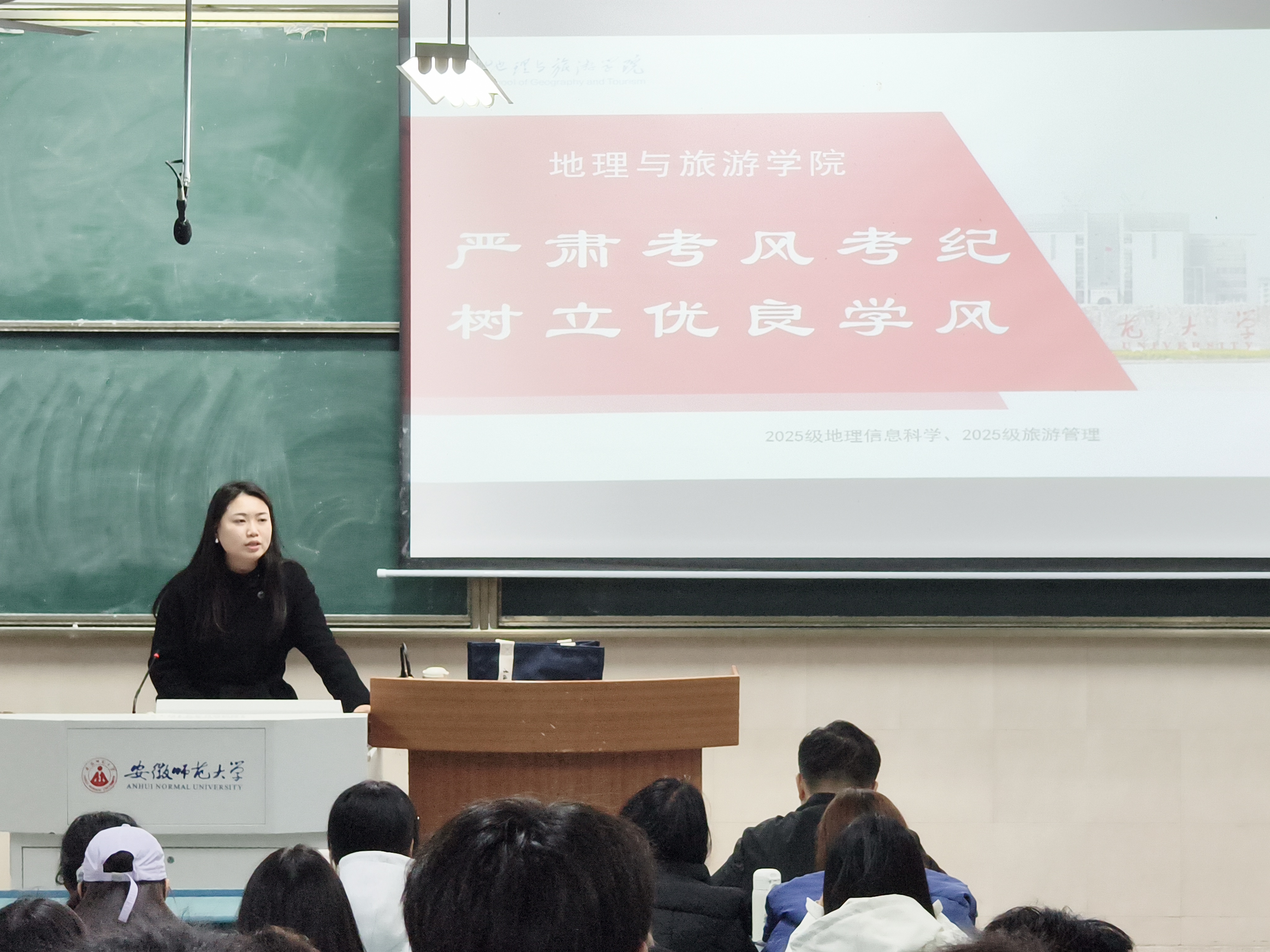 为切实筑牢冬季校园安全防线,同时进一步强化学风建设,严肃考风考纪,增强学生诚信应考意识,12月11日晚,2025级旅游管理专业召开冬季校园安全暨考风考纪教育主题班会,本次班会由辅导员吴文涵主讲,全体同学参会。