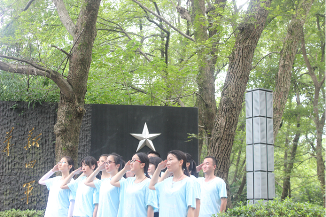 7月13日下午,实践团队在指导老师刘冠琪的带领下来到位于合肥市庐江县汤池镇的新四军江北指挥部纪念馆进行参观学习,缅怀革命先烈。成员们参观学习了馆内的200余幅图片及一些文字资料,系统了解了新四军江北指挥部建成、发展和壮大的过程。看到陈列柜台馆内革命先烈用过的冲锋号、手雷和步枪等物品,队员们触景生情,纷纷表示“我们今天的幸福生活,是无数烈士用生命和鲜血换来的。我们要时刻铭记英雄先烈的事迹,增强责任感与使命感,传承红色革命精神。”最后,队长张蕾携全体成员在纪念碑前向英雄们致敬!