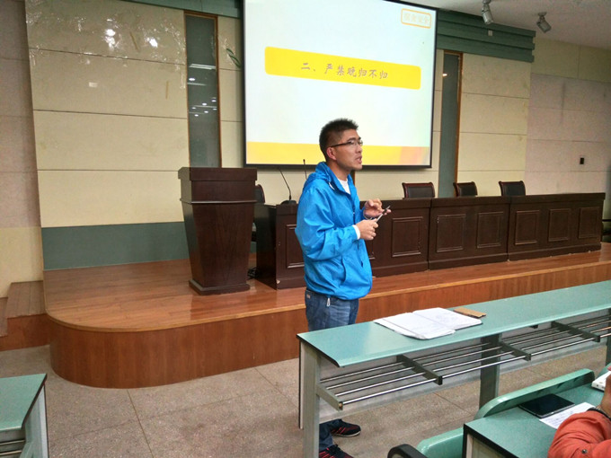 如今少数大学生仍缺乏安全防范意识,轻信他人,致使惨痛事件时有发生。接着,赵将又以身边人和自己的切身经历给同学们讲述了行途安全的相关事项。不要搭乘“黑车”、“不要单独乘夜车”、“不要在车站旁边逗留”,他通过一个个鲜明的例子给同学们敲响了安全的警钟,提高了同学们防盗防骗的意识。