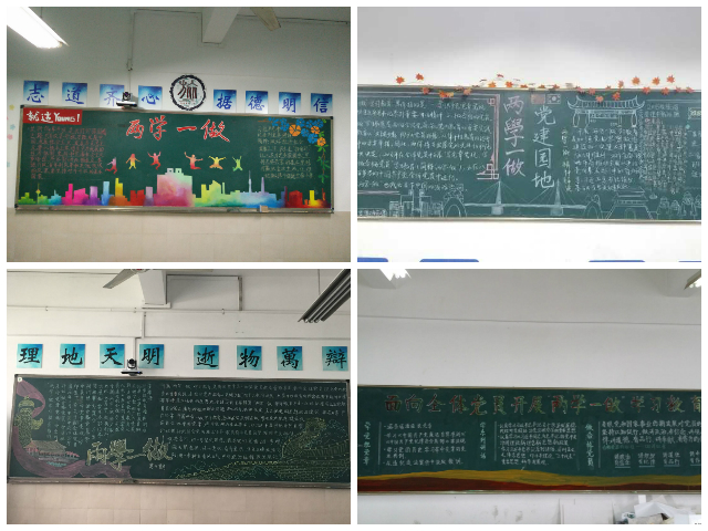 组织相关专业班级在固定教室中开展“两学一做,努力向党组织靠拢”专题黑板报设计比赛。