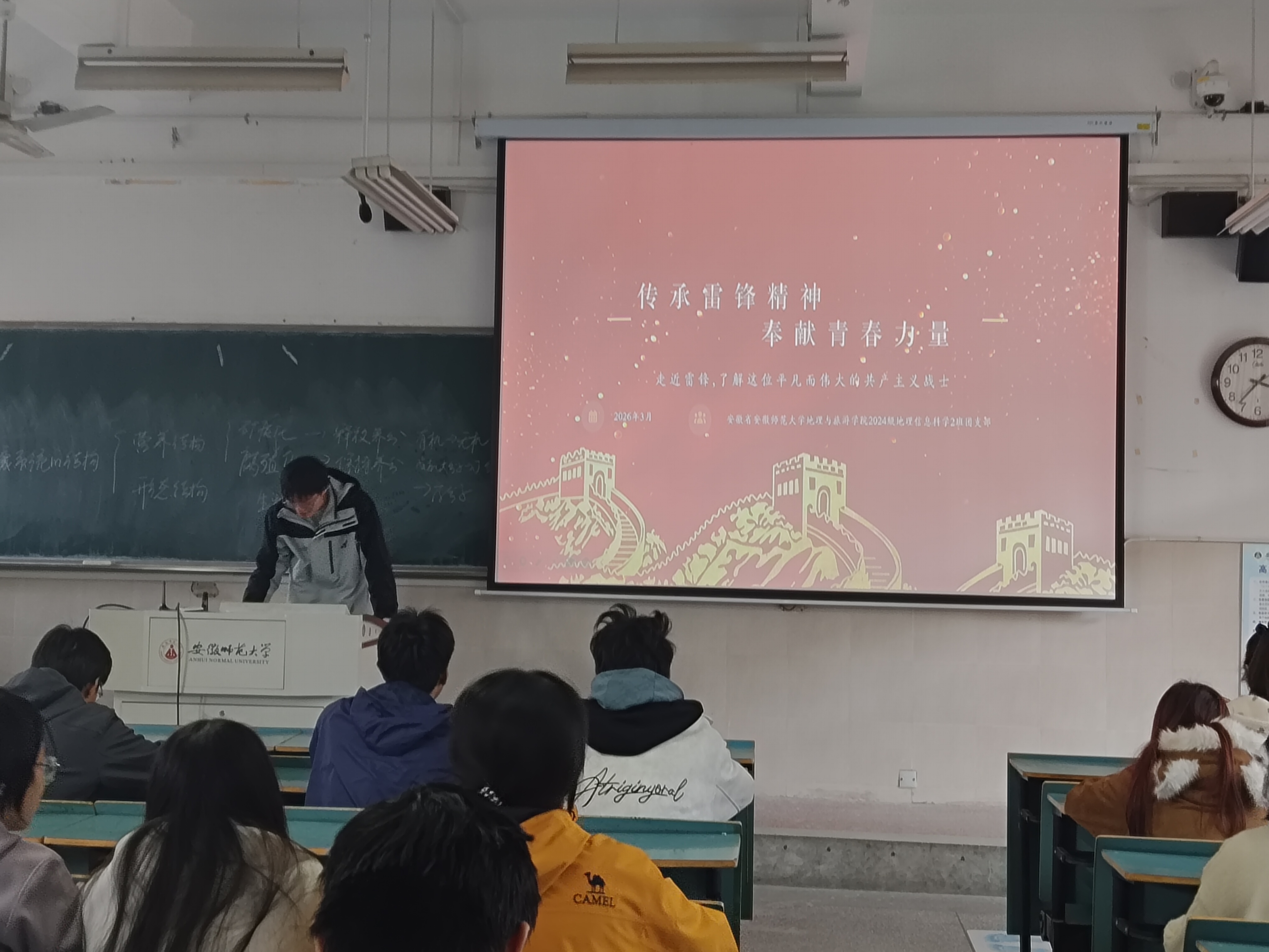 为深入学习贯彻雷锋精神,引导青年学子坚定理想信念、厚植奉献情怀,3月27日下午,2024级地理信息科学2班在行知楼3号楼404召开了以“传承雷锋精神 奉献青春力量”为主题的团日活动,带领全体团员走近雷锋、感悟精神、践行使命。