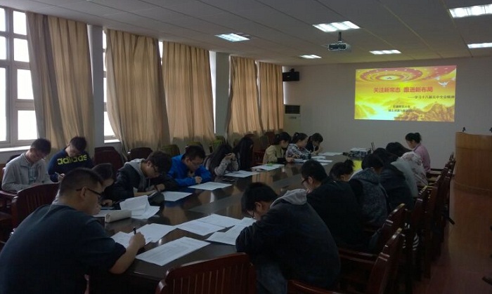 陈健最后在讲话中要求,全院团学骨干要先学一步、学深一层,并以学习示范引领全院学生迅速掀起学习热潮,把学习全会精神转化为推动学业、提升素质的强大动力,坚持“永不知足、勇于攀登、甘于奉献”的精神气,在“十三五”规划的时代背景下创造美好人生,为学校高水平大学建设作出积极贡献。
