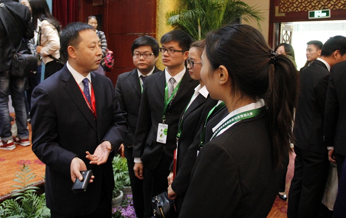 大赛评委会成员、北京中国国际旅行社有限公司董事总经理陆军与我校参赛学子亲切交流