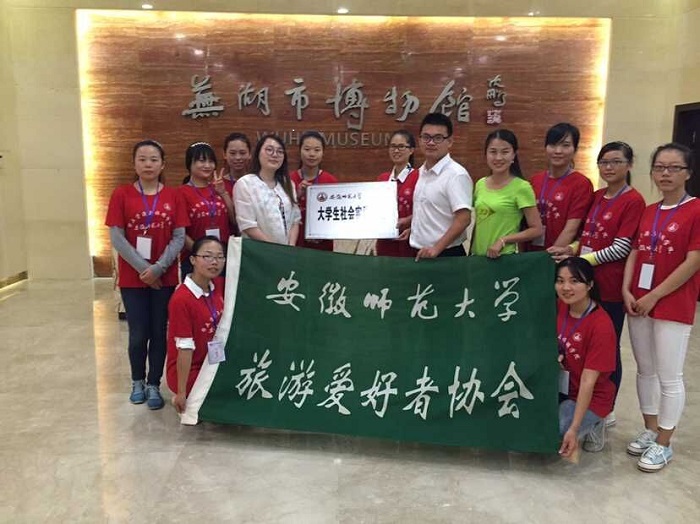 与芜湖市博物馆签订协议,共建校外大学生社会实践基地,即由我校旅游爱好者协会组织志愿者承担芜湖市博物馆法定节假日和周末的讲解服务工作,由芜湖市博物馆统一对志愿者进行专业讲解培训、礼仪培训及年度绩效考核,对考核通过的志愿者颁发志愿实践证书。