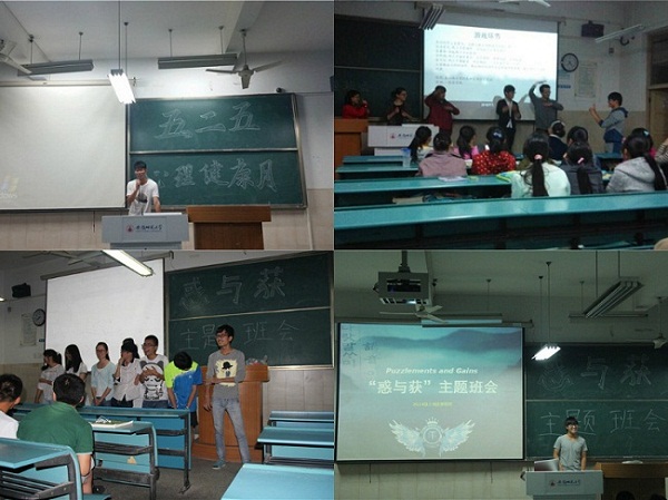 各班级纷纷召开了心理健康主题班会。一年级各班级举办了“给未来的自己”活动,此次活动以写一封给未来自己的信件的形式,让同学们敞开心门,畅谈青春,规划明天。同学们写完后由班干负责收集,在一年后把信件全部返还给各位同学,让各位同学比较一年的得与失。其他年级的主题教育班会通过PPT解说、组织游戏、观看心理电影等方式,带领大家了解大学生常见心理问题、心理健康判断标准以及心理问题的解决方法、人生价值导航等内容。主题班会的开展营造了师生全员关注心理健康的良好氛围,促进了同学之间的相互了解和信任,鼓励同学们关爱他人。