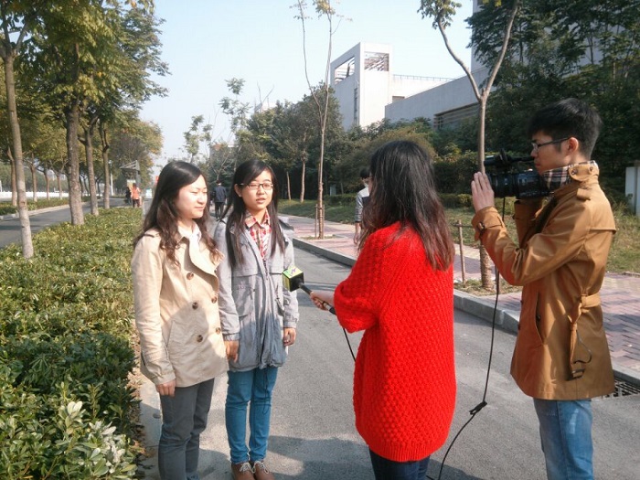 2013级土地资源管理专业的5位女生,在芜湖市电视台记者的指导下,认真了解了节目的制作流程及技巧,共同摄制完成了三组关于私家车司机问路的视频。